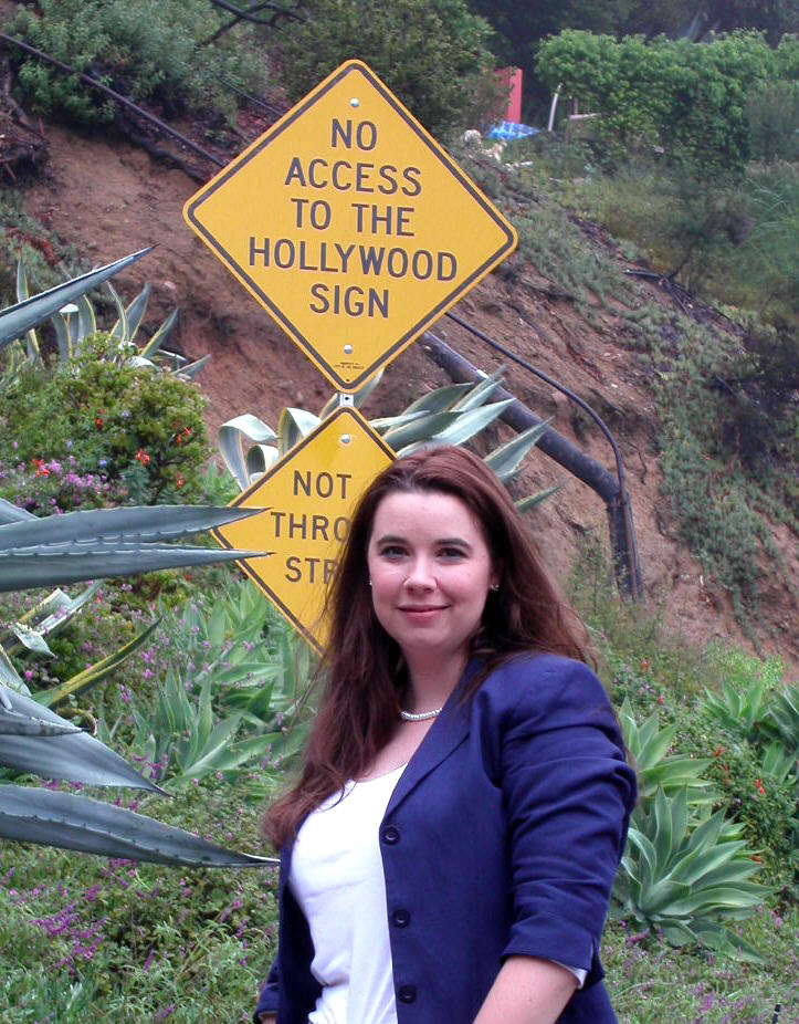 Hollywood sign would have been behind us -- if it existed. And wow, was that the wrong red for my hair!